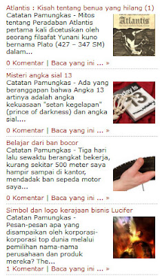 Bagi Anda yang gemar dengan dunia Blogger, berikut ini ada sedikit tutorial script widget baru untuk menampilkan excerpt atau ringkasan artikel yang disertai gambar kecil (thumbnail) atau bisa juga disebut Random Post/Postingan Acak. Dari sekian banyak tampilan dan bentuk Random Post, tak ada salahnya jika Anda mencoba tutorial yang satu ini. Kelebihan Random Post ini sangat mudah untuk diterapkan dan diedit sewaktu-waktu sesuai selera. Berikut Tampilan random post widget with thumbnail yang diadopsi oleh blogger plugin untuk Blogspot seperti screenshot di bawah ini.